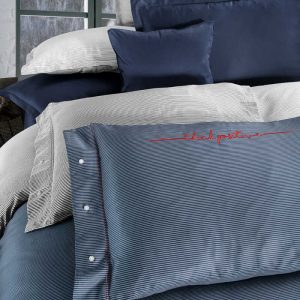 - Наволочки в полоску с вышивкой и кантом по краю 2 шт